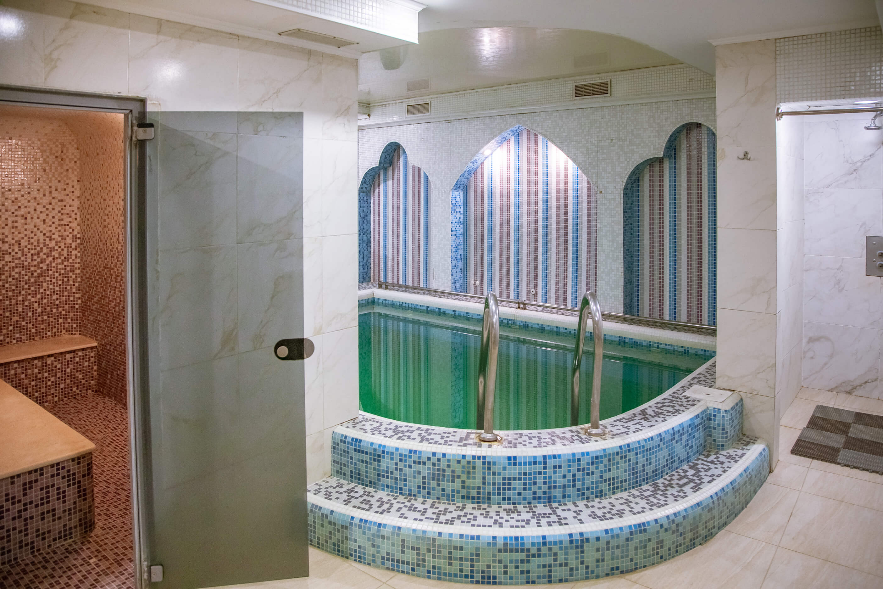 indoor swimming pool, sauna, Turkish bath, steam bath, hydromassage bathtub, Jacuzzi.